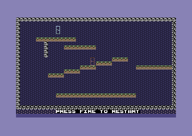 From colliding to dying is a small step. Once the player collides with an enemy we kill him by removing the player object. A "Press Fire to Restart" message is displayed and a press on the button will revive the player object.